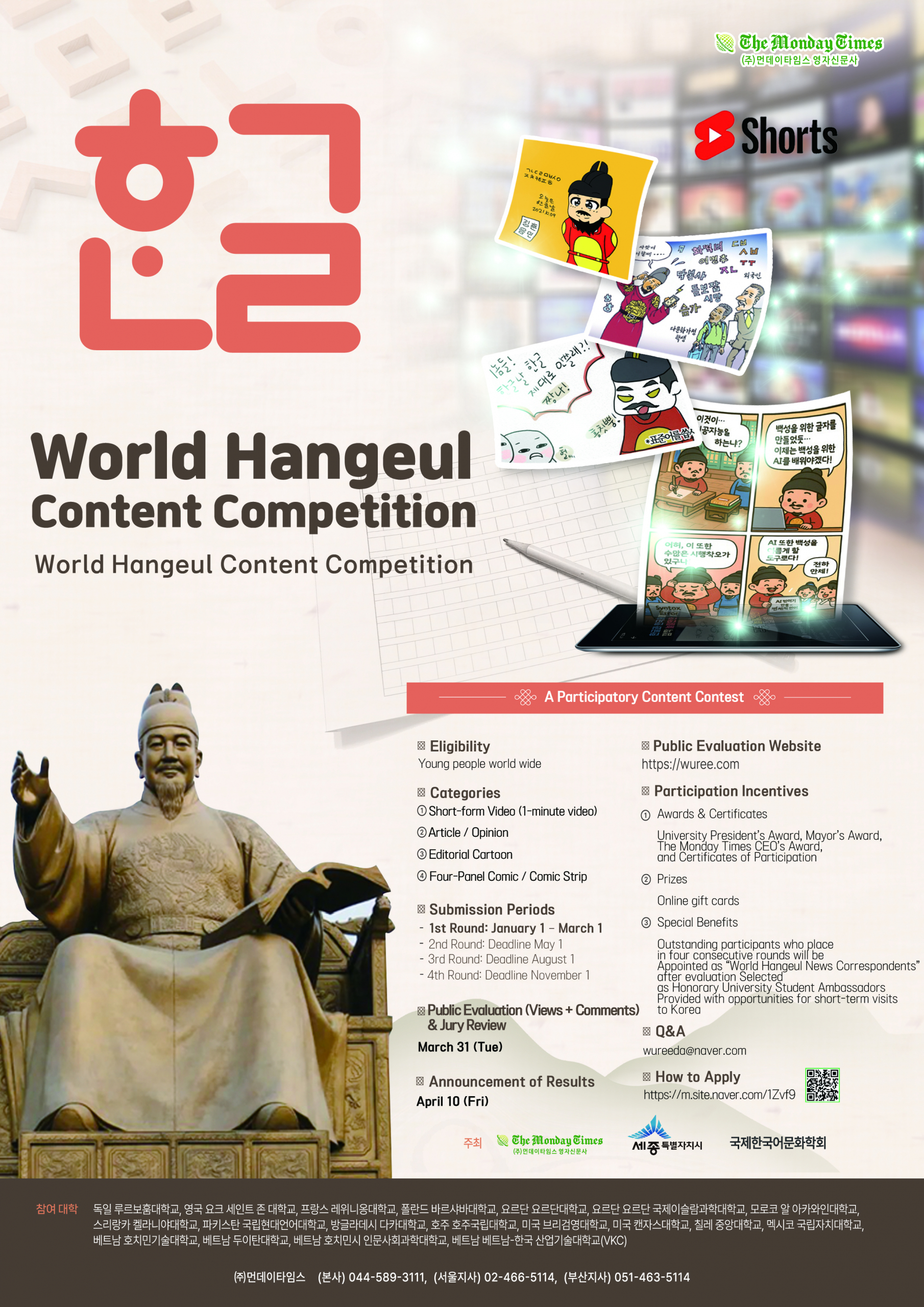 Nous avons le plaisir d’annoncer le Concours mondial de contenus en hangeul 2026.